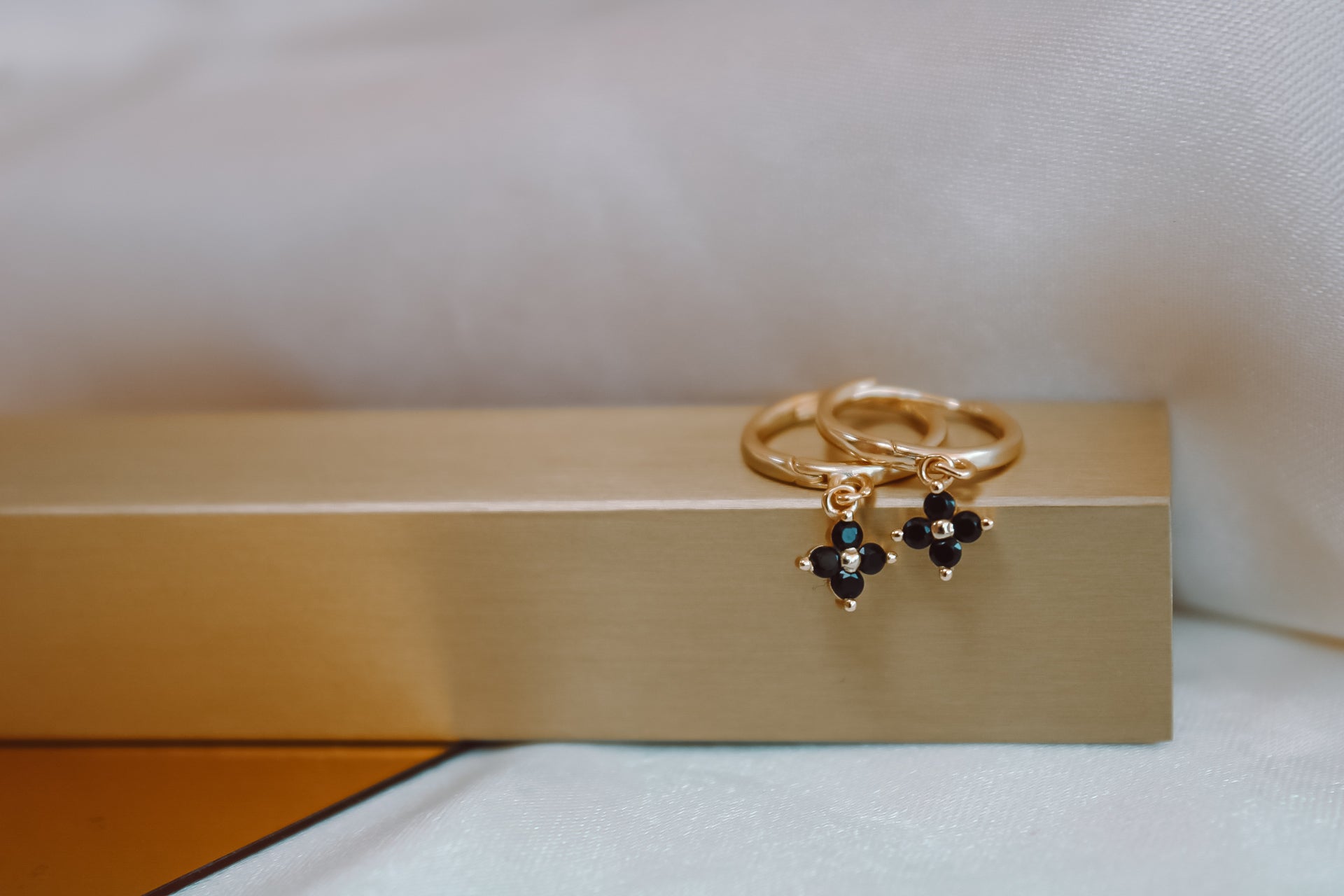Argollas Flower Gold Black - Atesorame Argollas Flower Gold Black - Atesorame