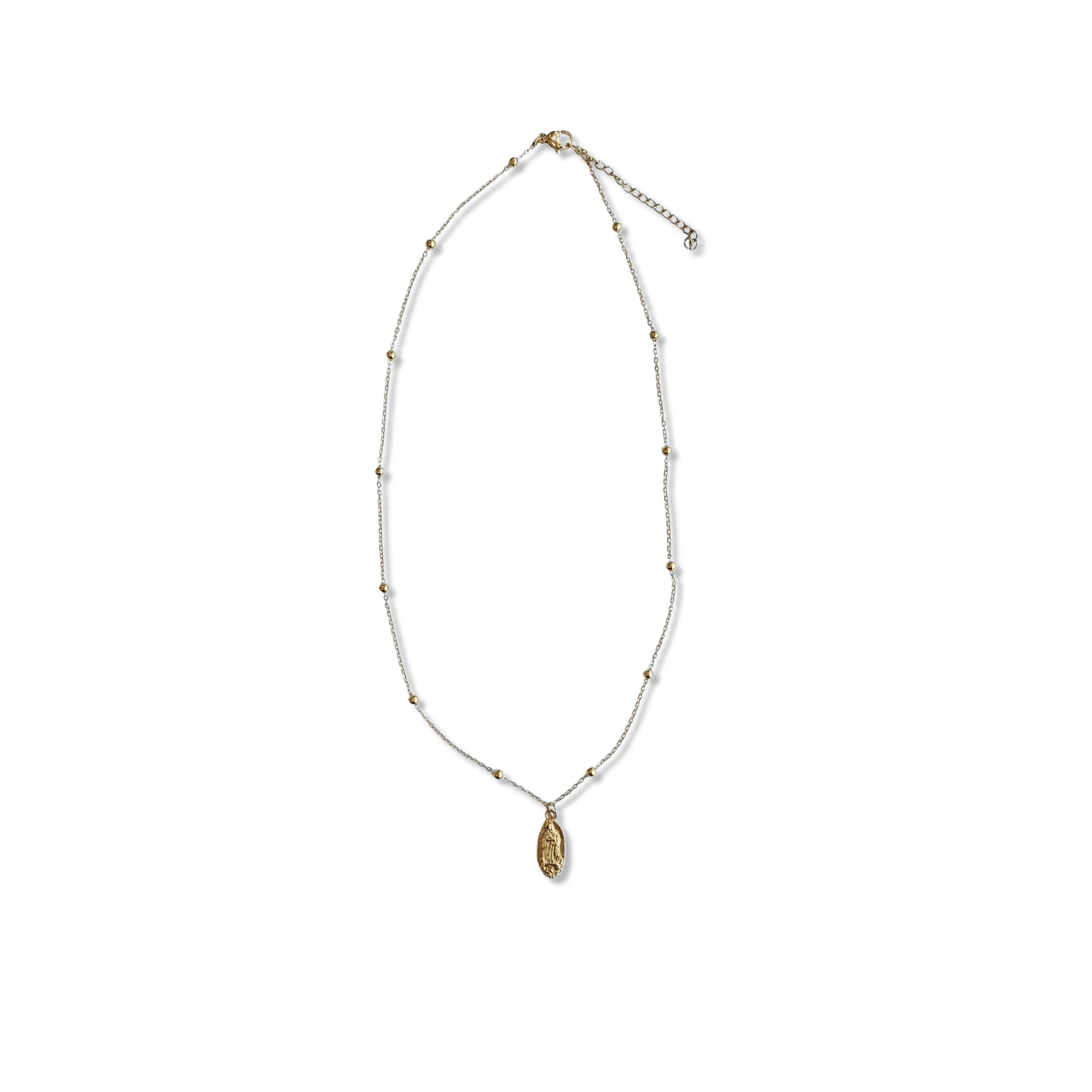 • Diseño: Cadena fina con bolitas y dije de Virgen de Guadalupe