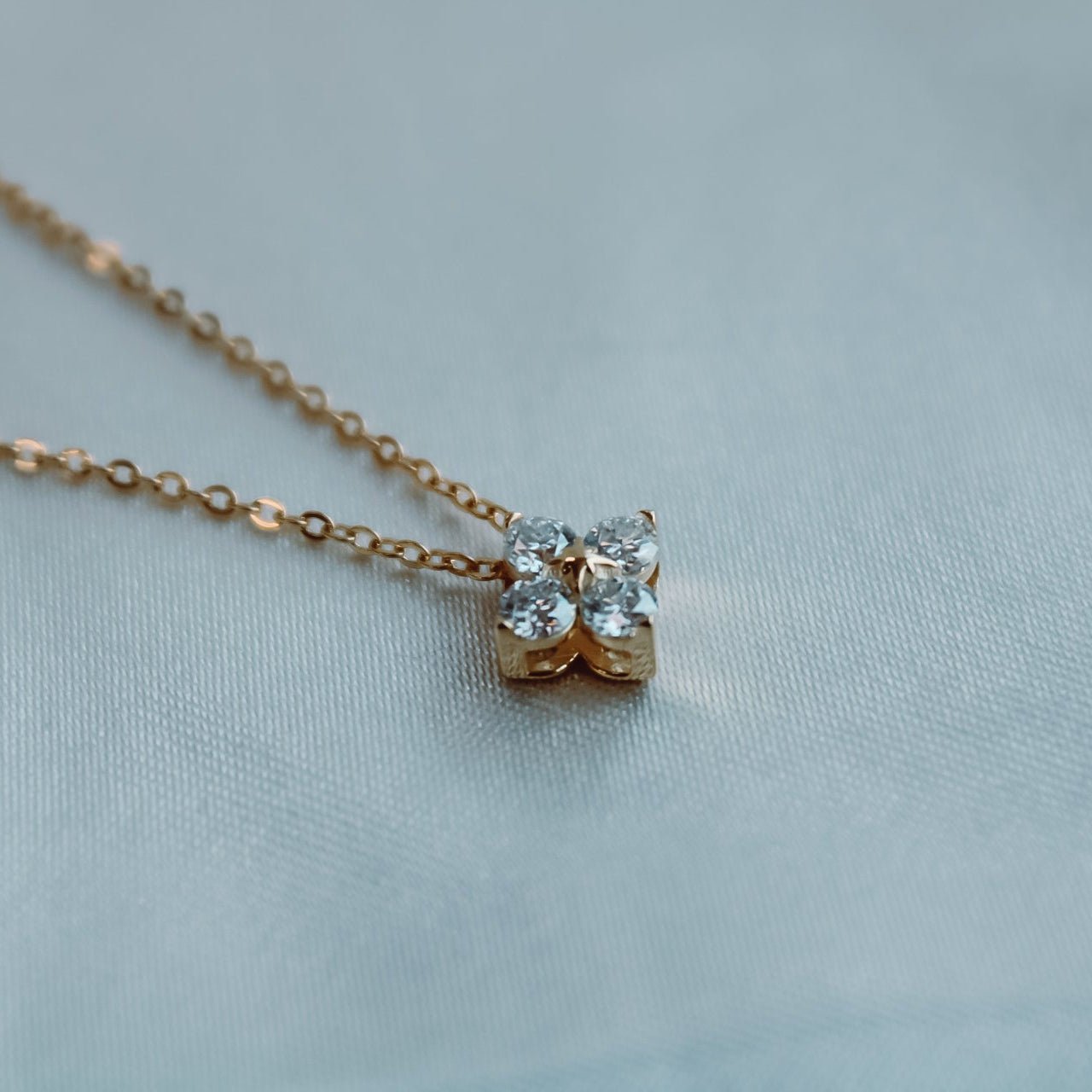 Un amuleto de fortuna y brillo. Diseñado en plata de ley 925 con enchape en oro 18k, este collar presenta un trébol formado por 4 moissanitas de 3 mm, que en conjunto suman 0,4 ct.