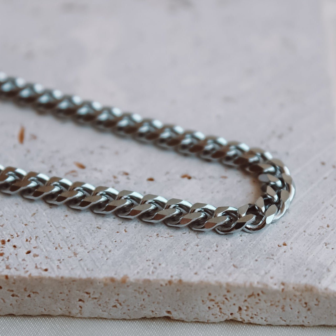 El Collar Men Cuban Chain es un esencial del estilo masculino: fuerte, versátil y siempre en tendencia. Diseñado en acero inoxidable y con un ancho de 5 mm, ofrece un look limpio y contundente sin ser excesivo.