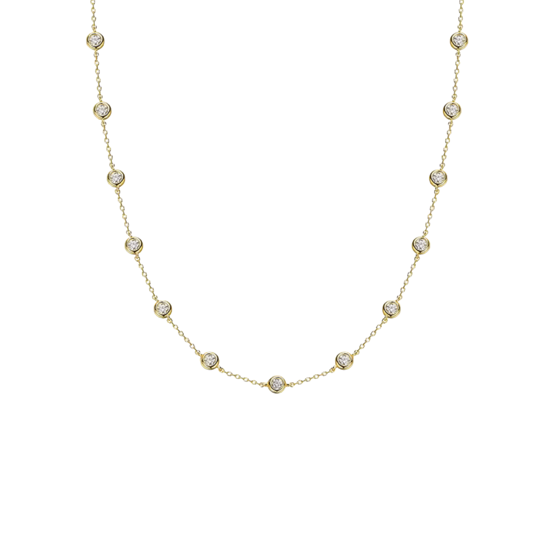 Diseñado para reflejar la elegancia en su máxima expresión, el Collar Moissanita Line Silver está elaborado en plata de ley 925 y enchape de oro 18k y engastado con 20 moissanitas de 3 mm (0.10 ct cada una), que en conjunto suman 2 ct de luminosidad total.