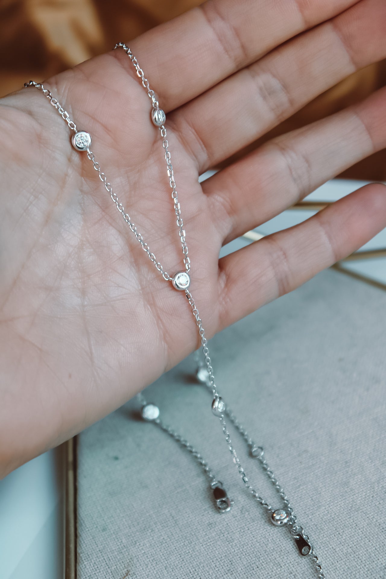 Collar Moissanita Elena Lariat Silver - Atesorame Collar Moissanita Elena Lariat Silver - Atesorame