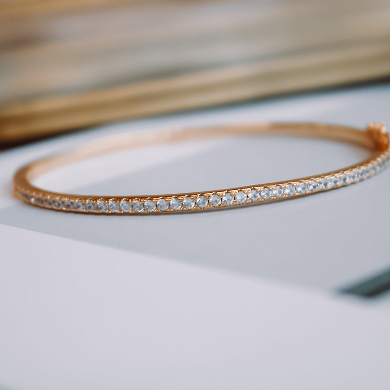 Su diseño fino y curvatura perfecta abrazan la muñeca con suavidad, mientras su broche con seguro garantiza un ajuste firme y cómodo para el uso diario o momentos especiales.