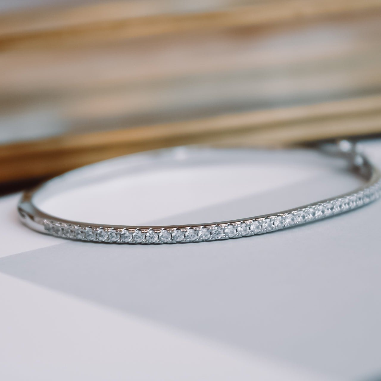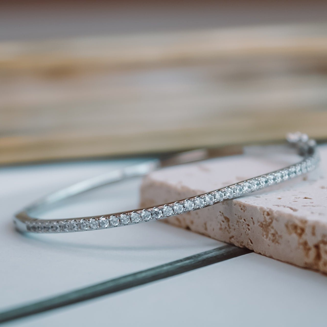 Su diseño fino y curvatura perfecta abrazan la muñeca con suavidad, mientras su broche con seguro garantiza un ajuste firme y cómodo para el uso diario o momentos especiales.