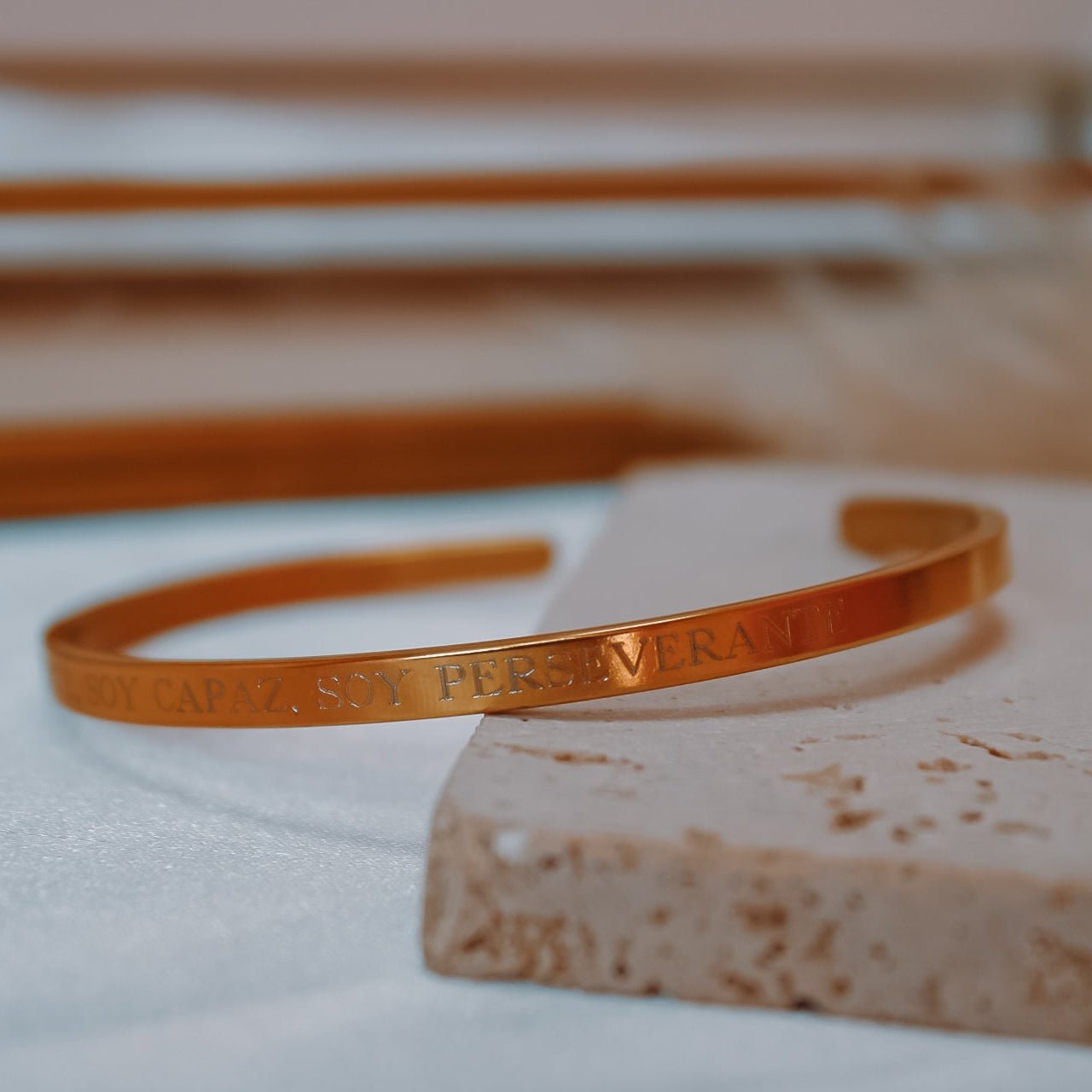 Esclava Manifiesta "Soy fuerte, soy capaz, soy perseverante" Gold - 4mm - Atesorame Esclava Manifiesta "Soy fuerte, soy capaz, soy perseverante" Gold - 4mm - Atesorame