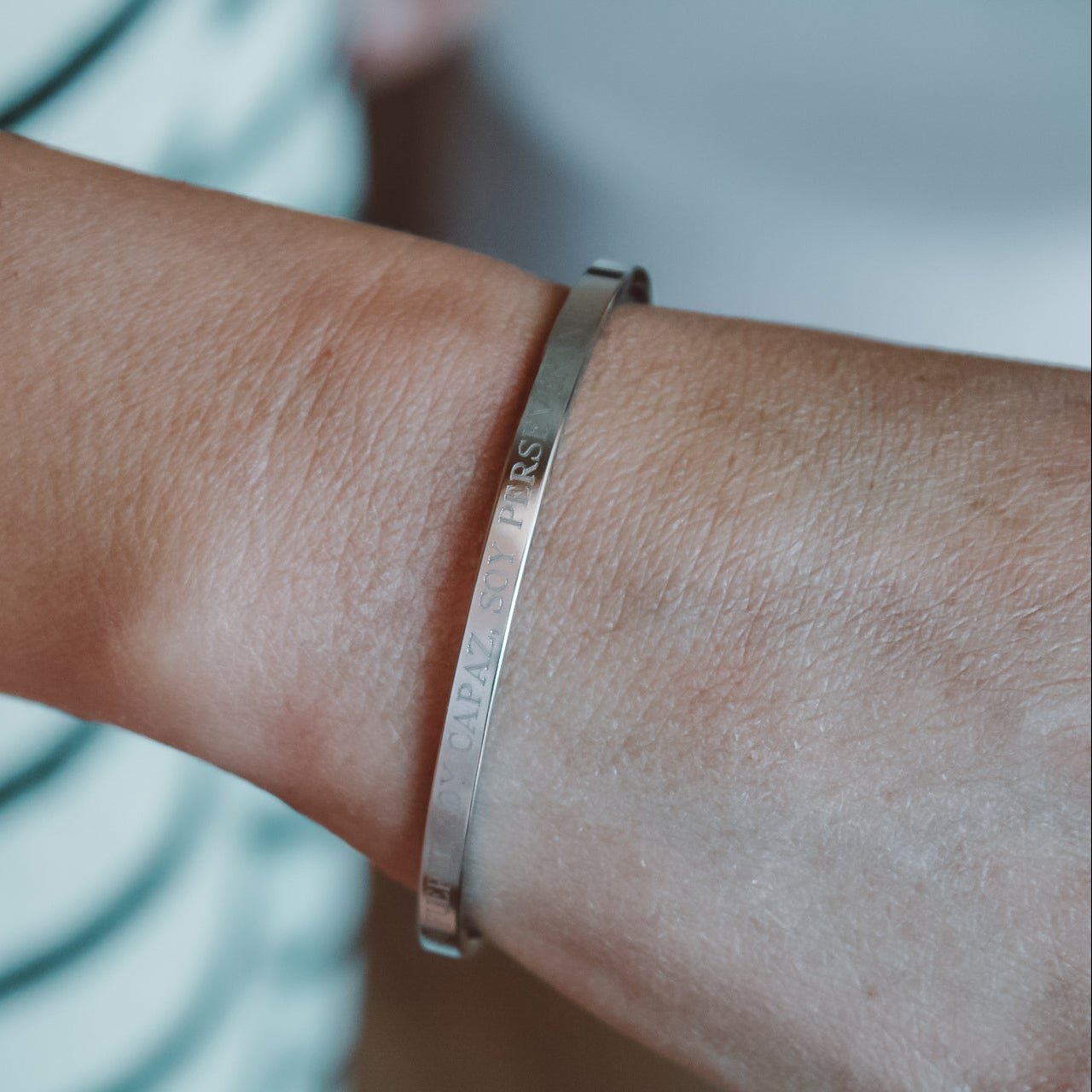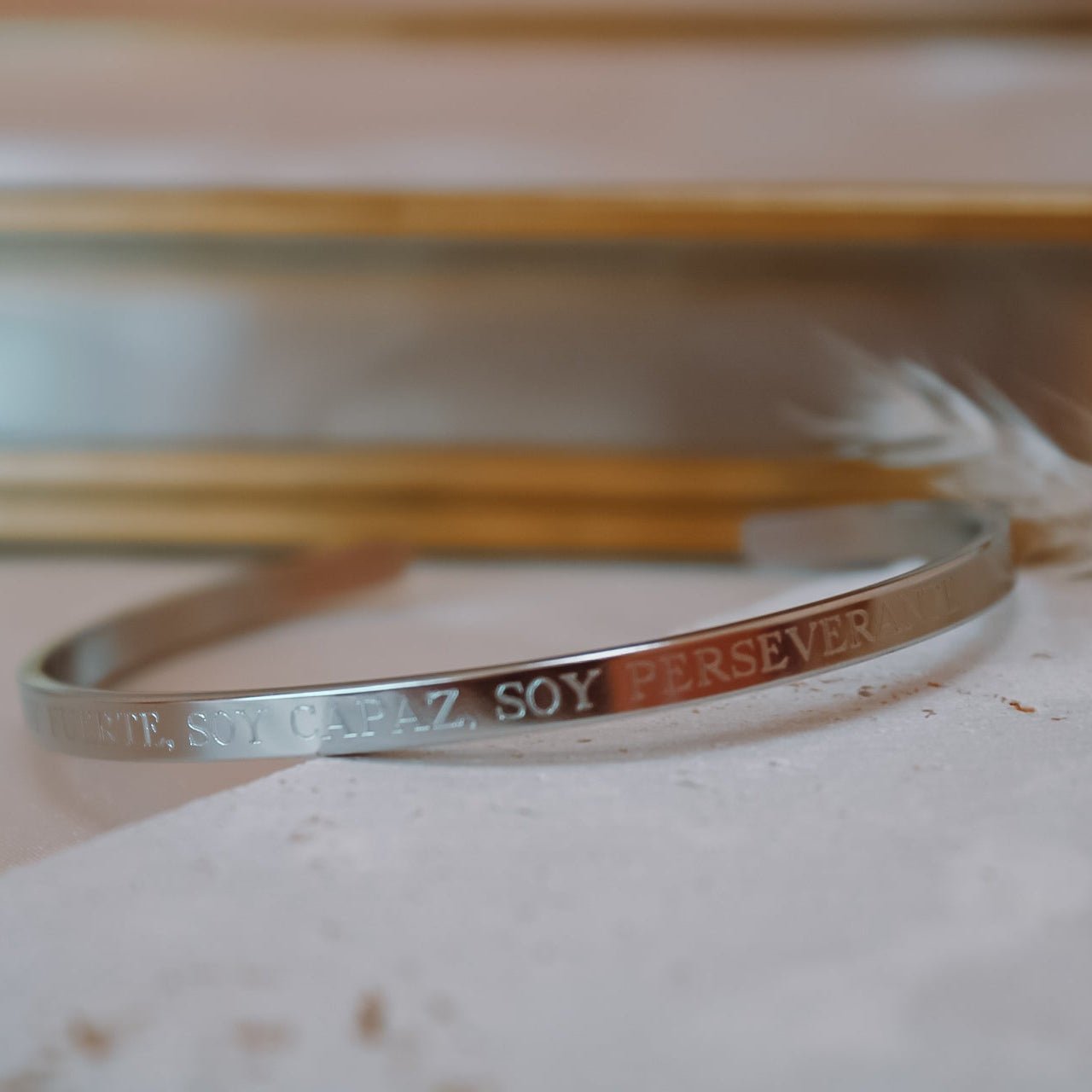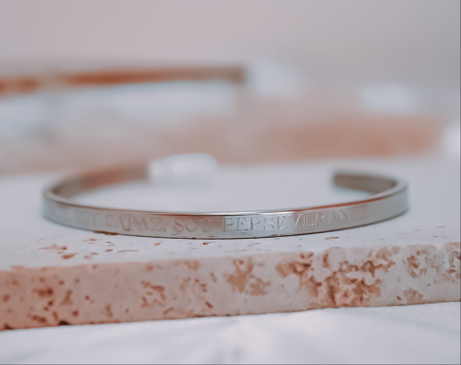 Su frase grabada —“Soy fuerte, soy capaz, soy perseverante”— es un recordatorio diario de tu fortaleza interior y de todo lo que eres capaz de lograr.