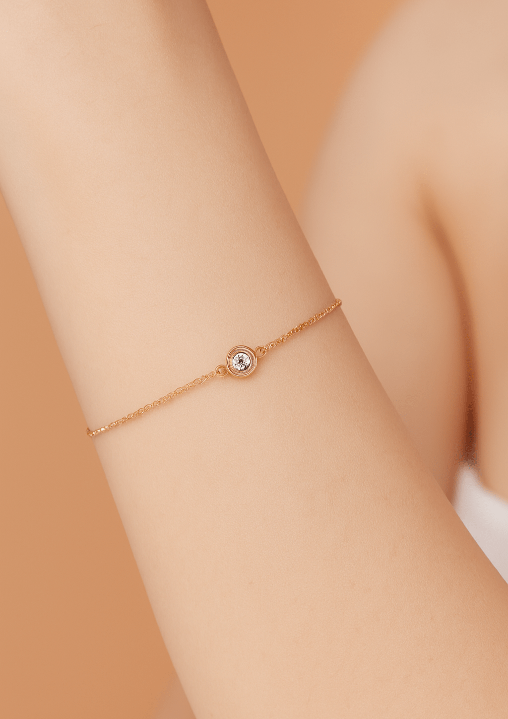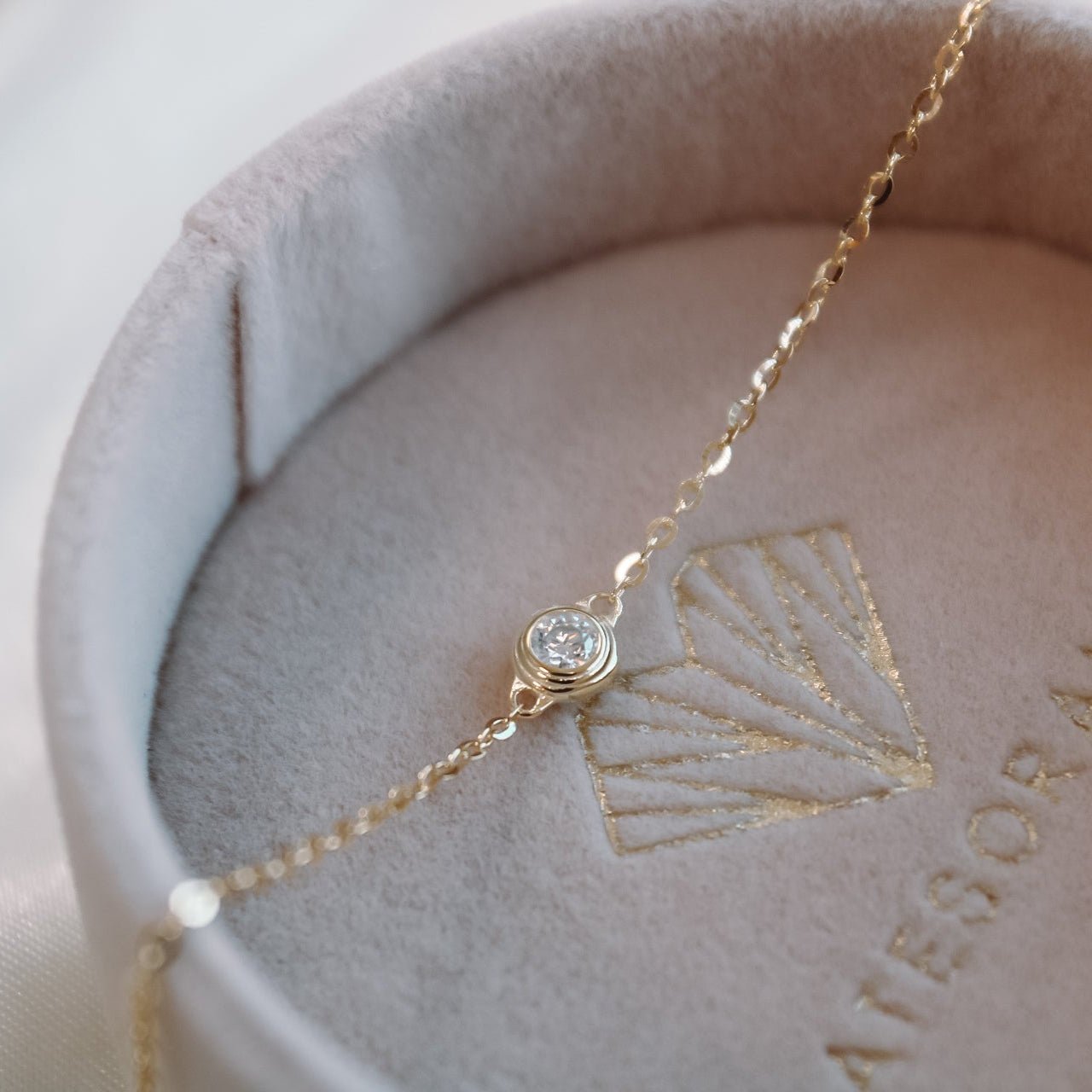 Una joya sutil que acompaña con luz y elegancia. Destaca por su diseño fino, delicado y minimalista, ideal para llevar todos los días o como un detalle sofisticado en ocasiones especiales.