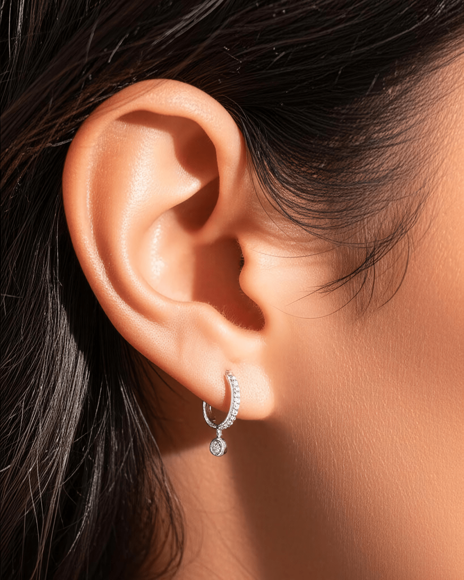 Luz en movimiento para cada día. Las Argollas Moissanita Punto de Luz Silver están diseñadas en plata de ley 925 y combinan un estilo delicado, elegante y atemporal, perfecto para el uso diario o para elevar cualquier look con sutileza.