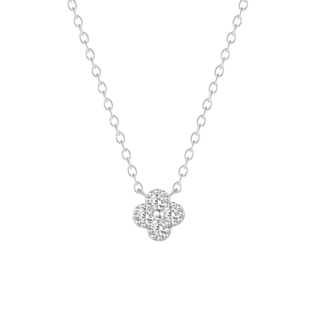 Un símbolo clásico de fortuna en una joya delicada y elegante. El Collar Good Luck Trébol Silver está diseñado en plata de ley 925 con un dije en forma de trébol de aprox. 10 mm, engastado con circones que aportan un brillo sutil y especial.