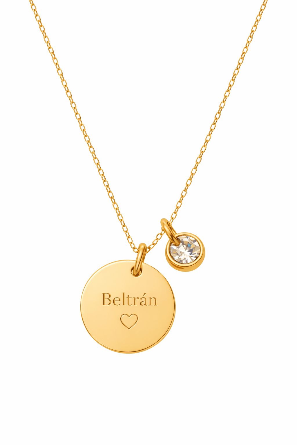 Una joya pensada para reflejar tu historia y lo que quieres llevar siempre contigo. Su medalla de 15 mm permite grabar por ambos lados nombres, fechas, frases o símbolos como corazón, estrella o infinito. Un circón central aporta un toque de brillo sutil y pureza, haciendo de esta pieza un detalle significativo y versátil.